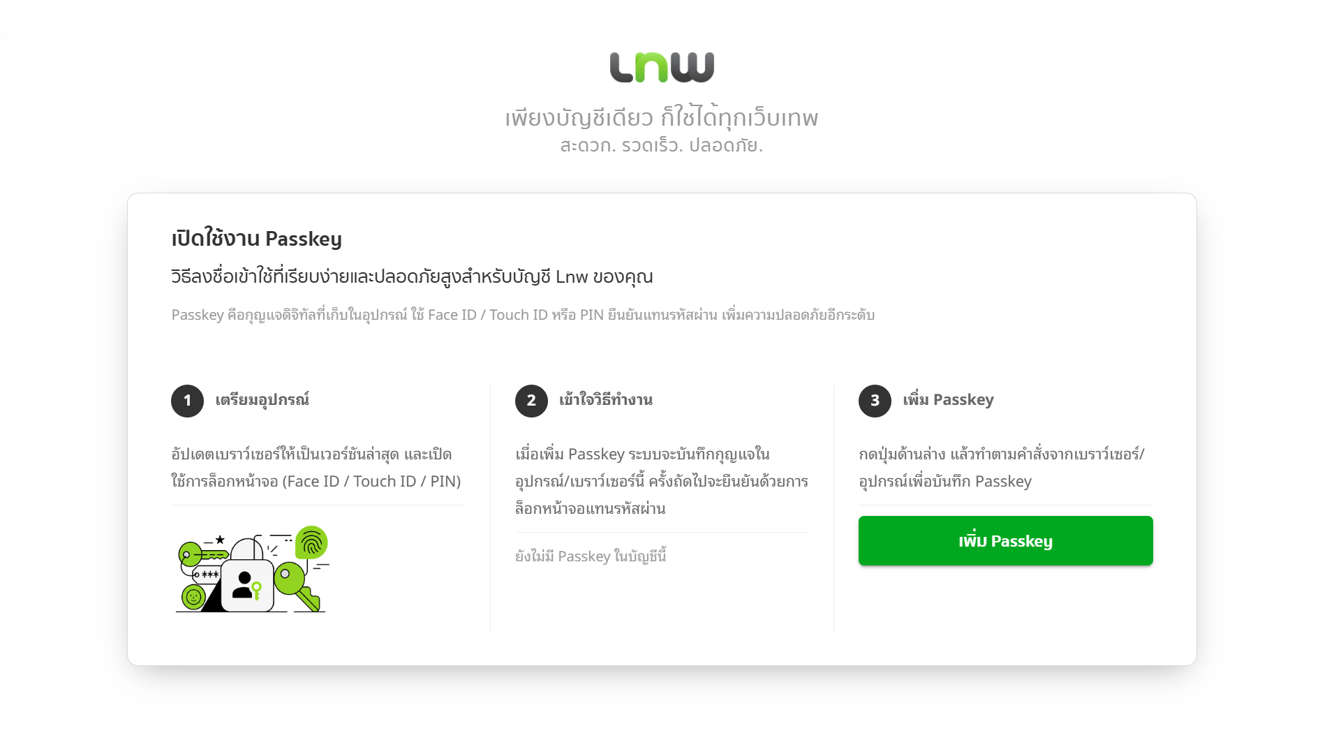 ฟีเจอร์พาสคีย์พร้อมใช้งานแล้ววันนี้บน LnwShop เพื่อให้ร้านค้าทำงานได้ลื่นขึ้น และเติบโตต่อไปได้อย่างมั่นใจในทุกวัน